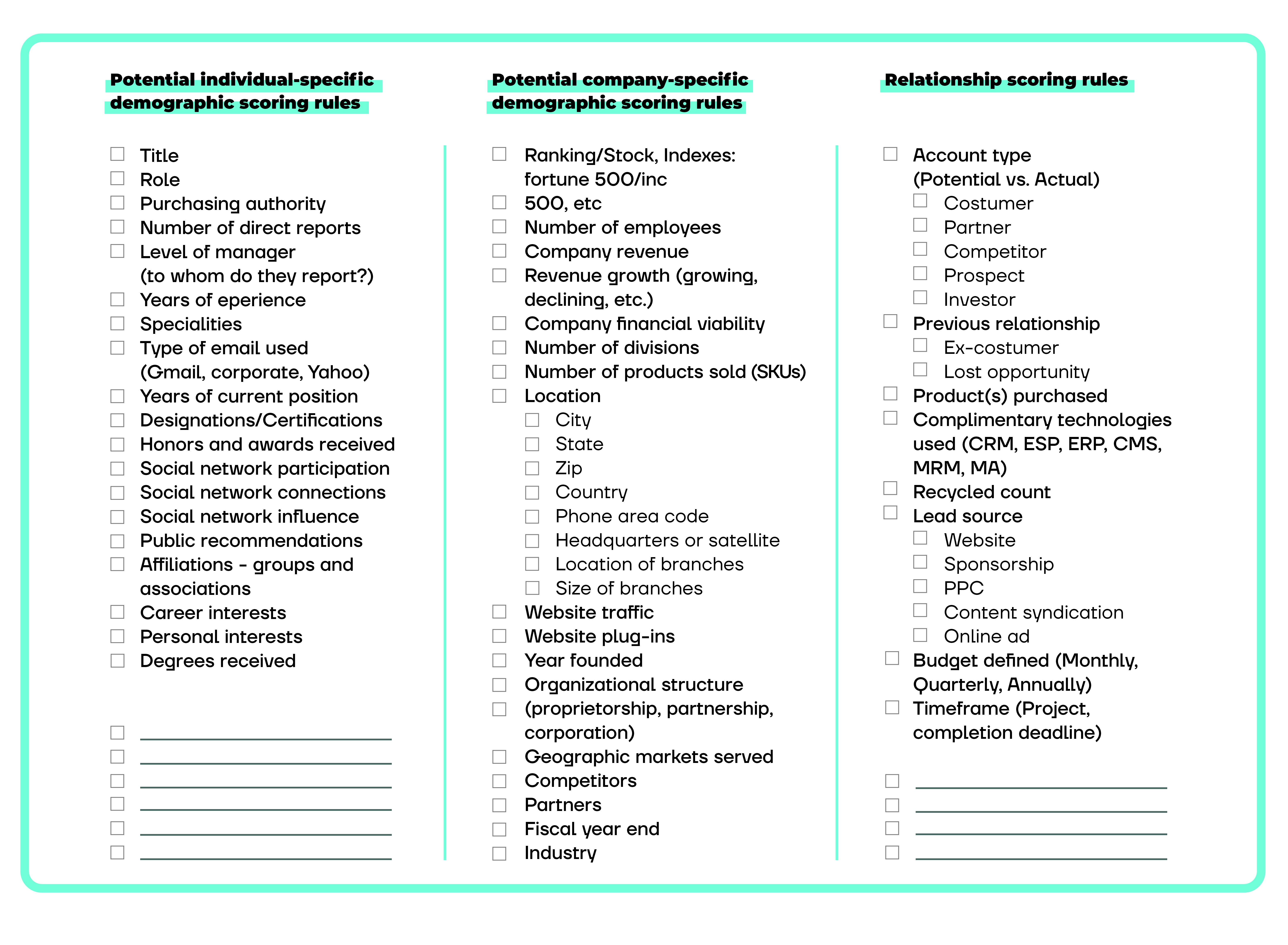 Darüber hinaus gibt es aber nicht nur „Wettbewerber“, die im Scoring Malus-Punkte sammeln. Auch Desinteresse und Non-Engagement bis hin zur klaren Ablehnung sorgen für Scoring-Minus bis hin zur Blacklist. Hier ein paar übliche Faktoren, die zu solchen Bad Scores führen können: