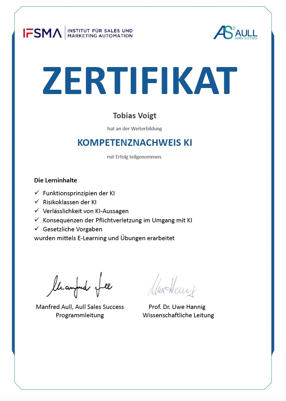 Bescheinigungen und Zertifikat: